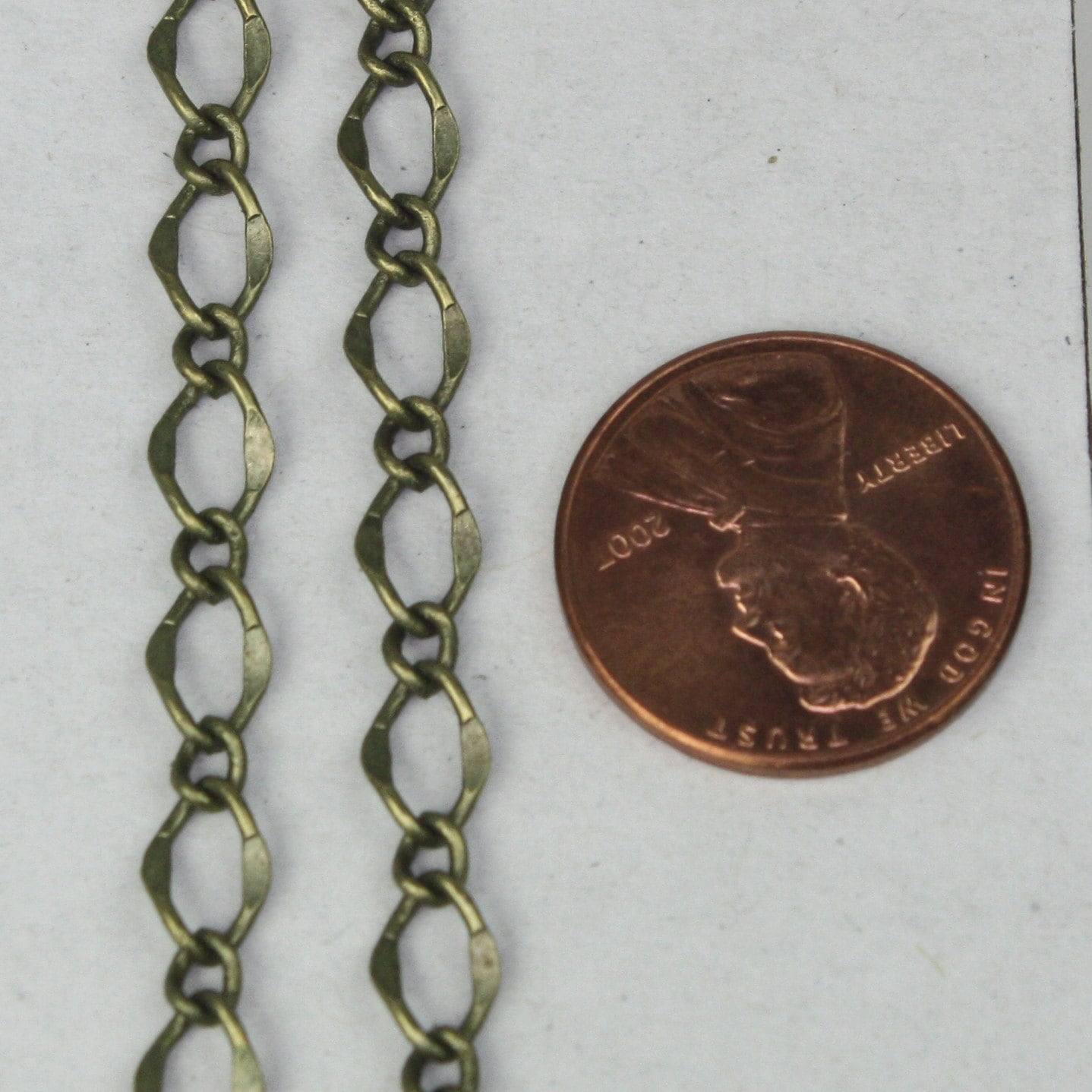 32 ft Spool of Antique Brass Necklace Big Hammered Figaro Soldered Curb Chain - 5x8mm SOLDERED - 58FIGARO