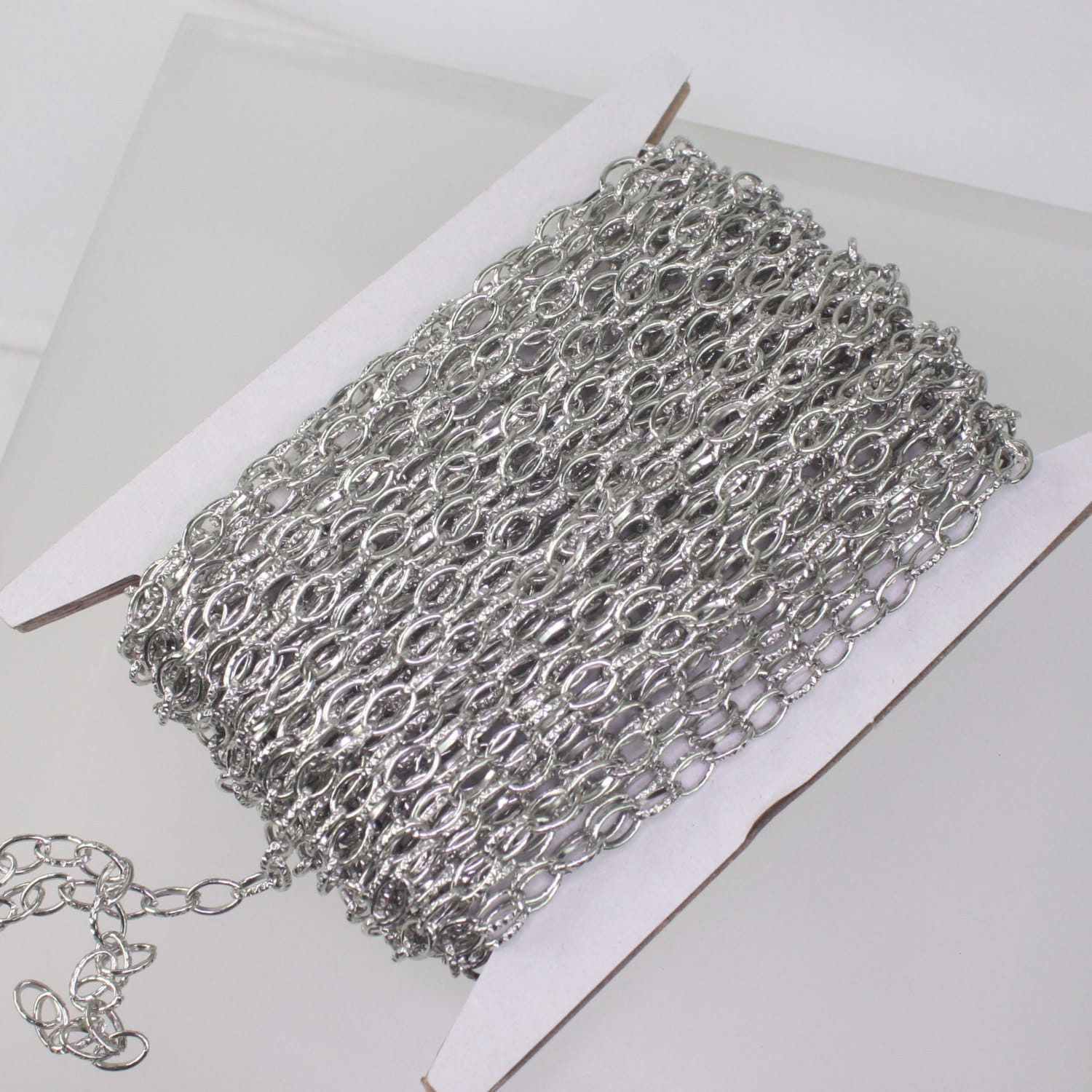 32 ft. Textured Rhodium/Antique Silver finished Drawn Cable chain - 6.3x3.5mm unsoldered link
