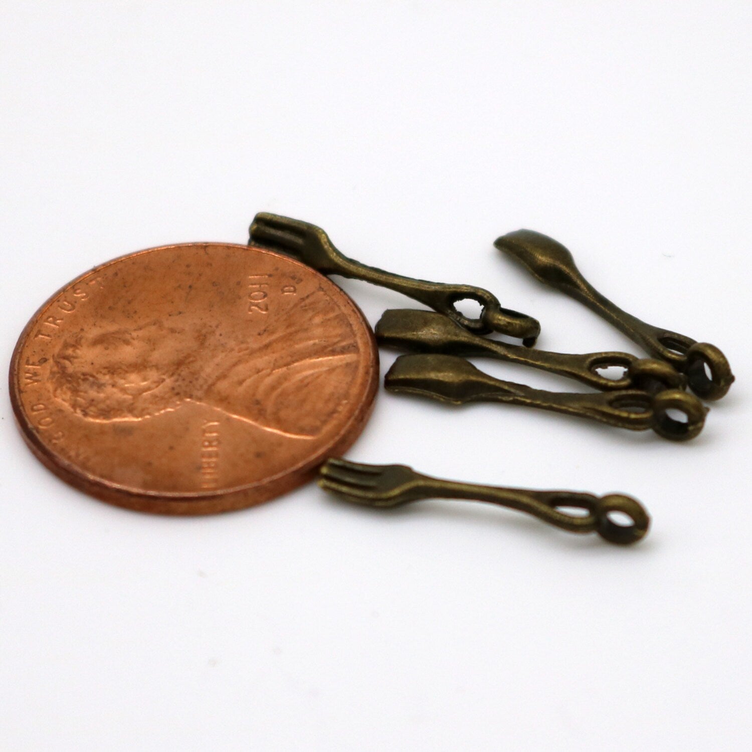 50 pcs Antique Brass Alloy Charm, Fork Charm, Dangle, Pendant - 17x3mm, Antique Bronze - from California USA MC185