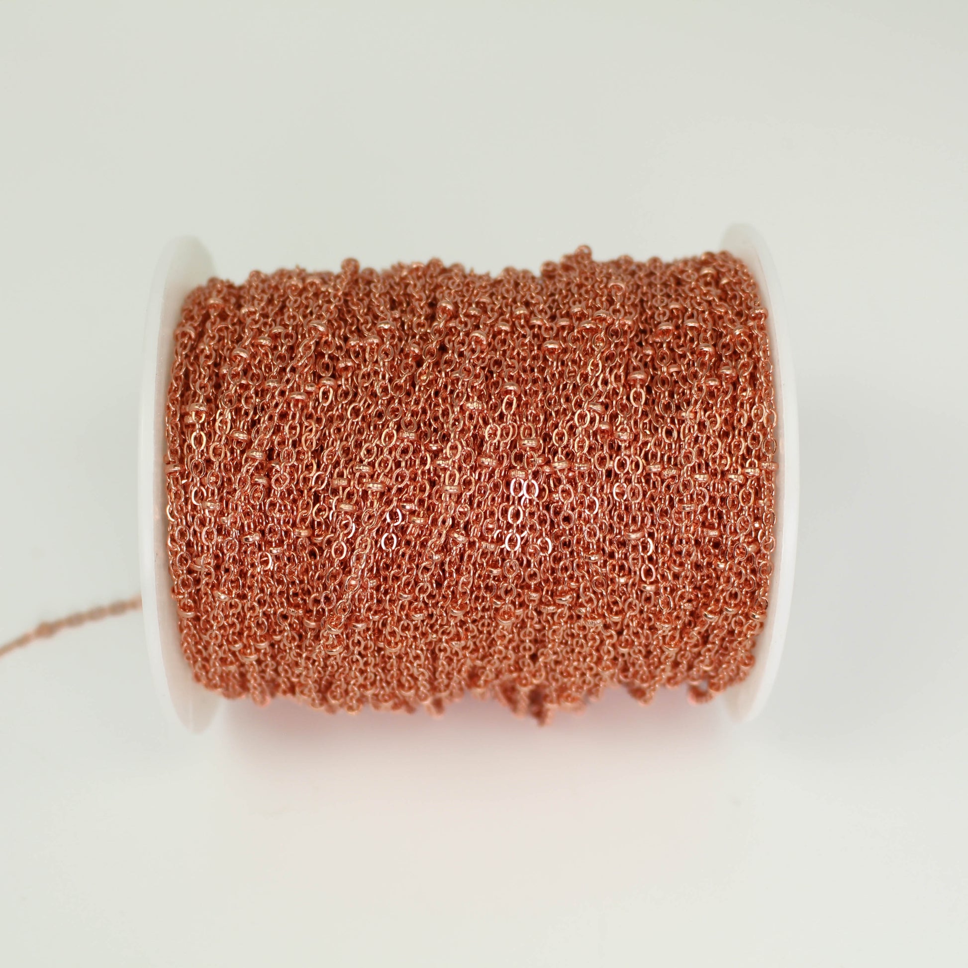 Anti Tarnish Coating Bright Copper Plated Satellite Flat BALL Chain - 3x1.7mm SOLDERED link -3/10/32/50/100/300 Feet Tiny Small Ball Chain - ATC317SAT