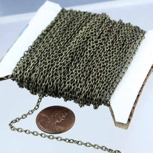 Antique Brass Chain, 50 ft spool of Antique Brass Round cable chain - 3x2.2mm - unsoldered link.Bulk Necklace chain