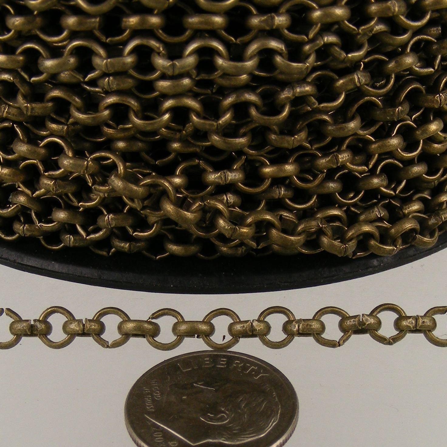 Antique Bronze Rolo Chain bulk, 100 ft of Rolo BRASS Cable Chain 4.7mm - Unsoldered Links - Wholesale Bulk - 47ROLO