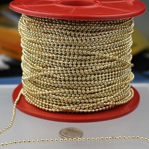 Gold Plated Chain Ball Bulk Chain, 32 ft. of ROUND BALL chain -2.4mm ball size - w/ FREE 20 pcs Connectors (Insert) - 24BALL