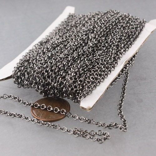 Gunmetal Rolo Chain bulk, 5 ft of Rolo Cable Chain 2.5mm - Unsoldered Links - Necklace Bracelet Wholesale Bulk Jewerly Chain