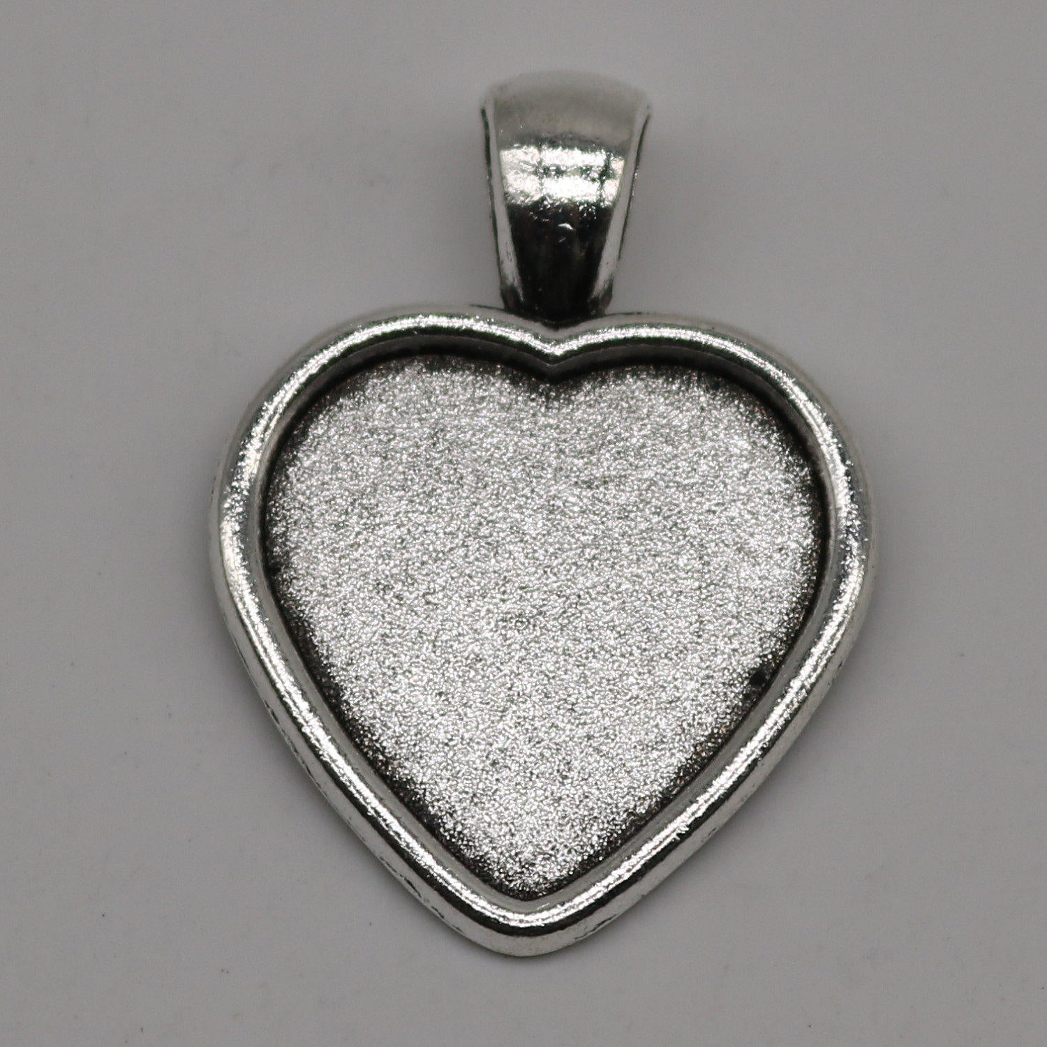 HEART Bezel with 20mm HEART GLASs Magnifying Domes Cabochon - 5 sets 10 pcs - 33mmx24mm Antique Silver - KB12 We are USA Seller