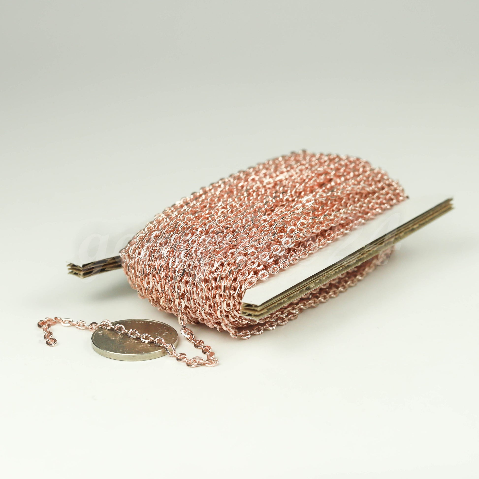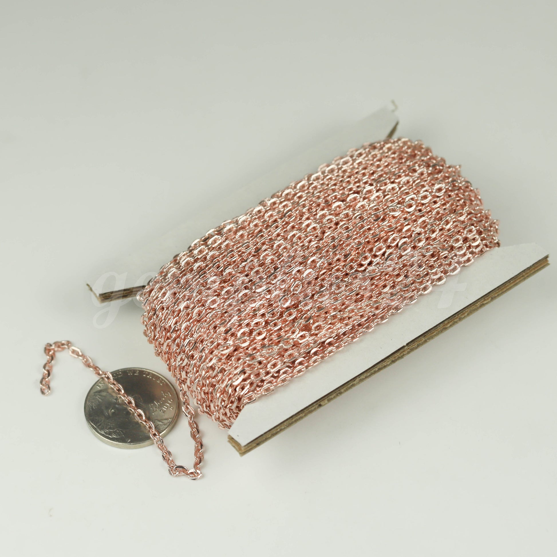 New 300 Ft Non Tarnish Flat Cable Chain - Rose Gold Flat Chain - 2x3mm Unsoldered - Anti Tarnish Free Resistant Soldered Cable - AT0623