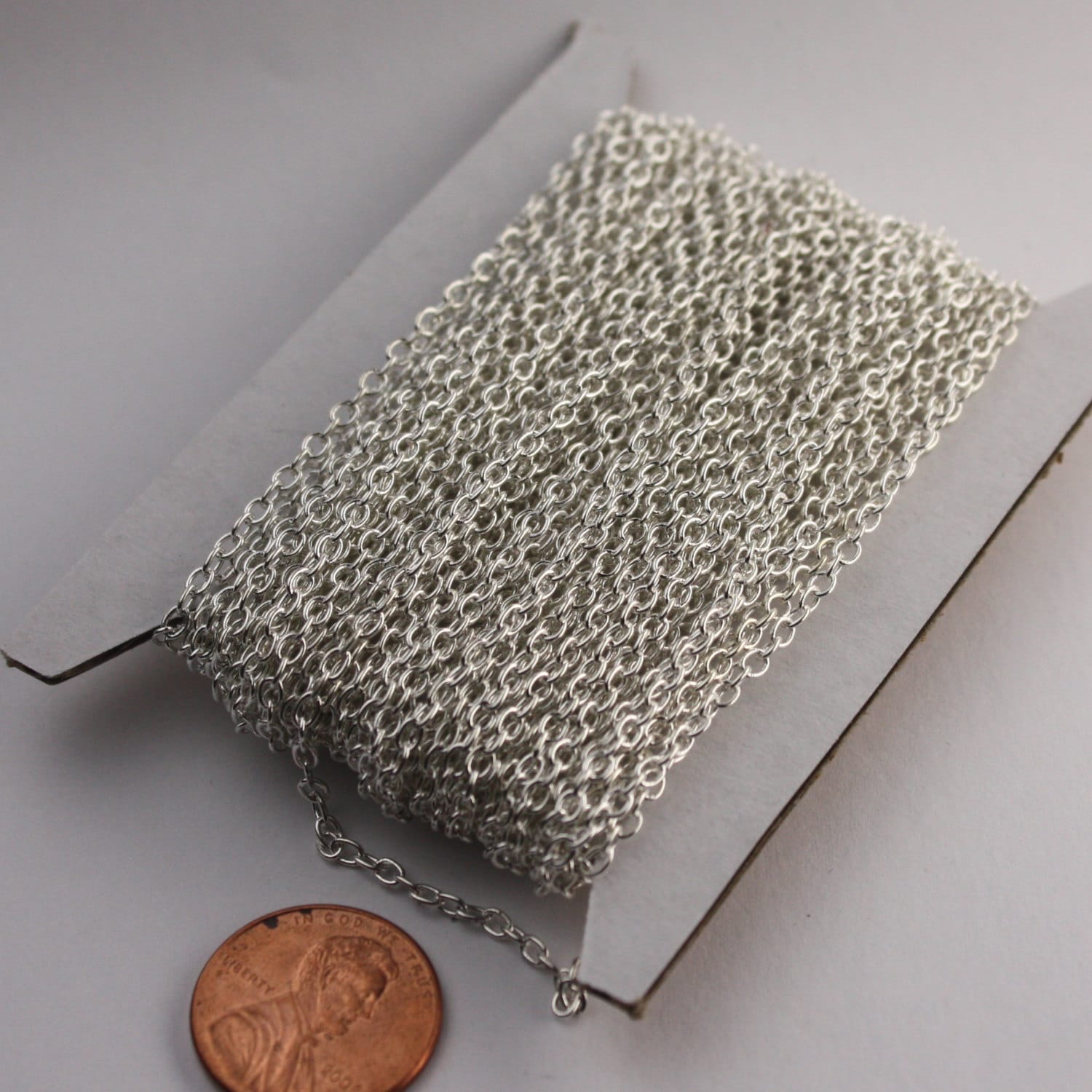 NEW New 32 ft of Silver Plated Round SOLDERED Cable Chain - 2.6x2.1mm SOLDERED Link - 2621S