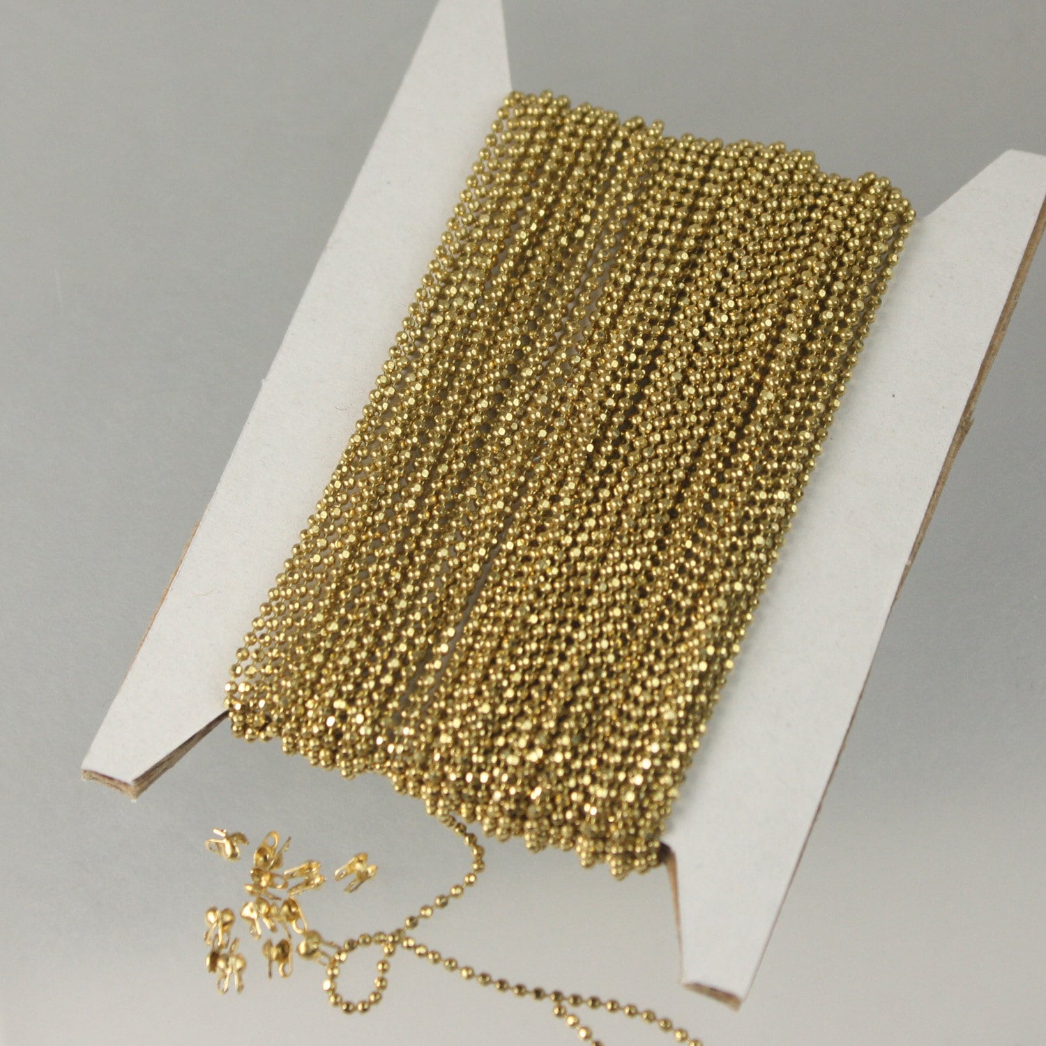 raw Brass Ball Chain Bulk, 100 ft. spool of FACET micro ball chain - 1.2mm ball w/ FREE 100 connectors (crimp) - 12DC