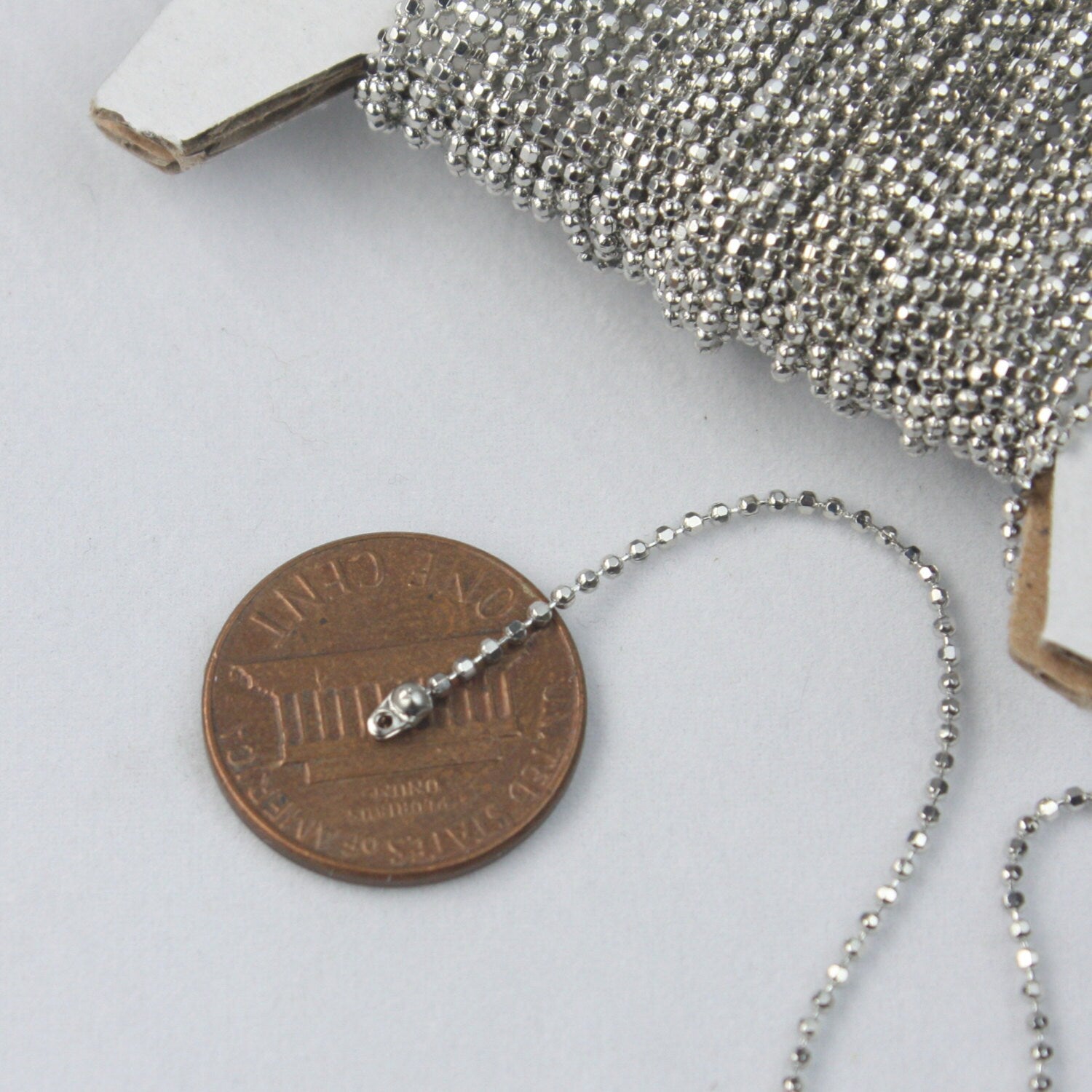 NEW new 100ft. spool of Rhodium Plated brass Faceted miocro ball chain - 1.2mm ball size w/ FREE 100 connectors
