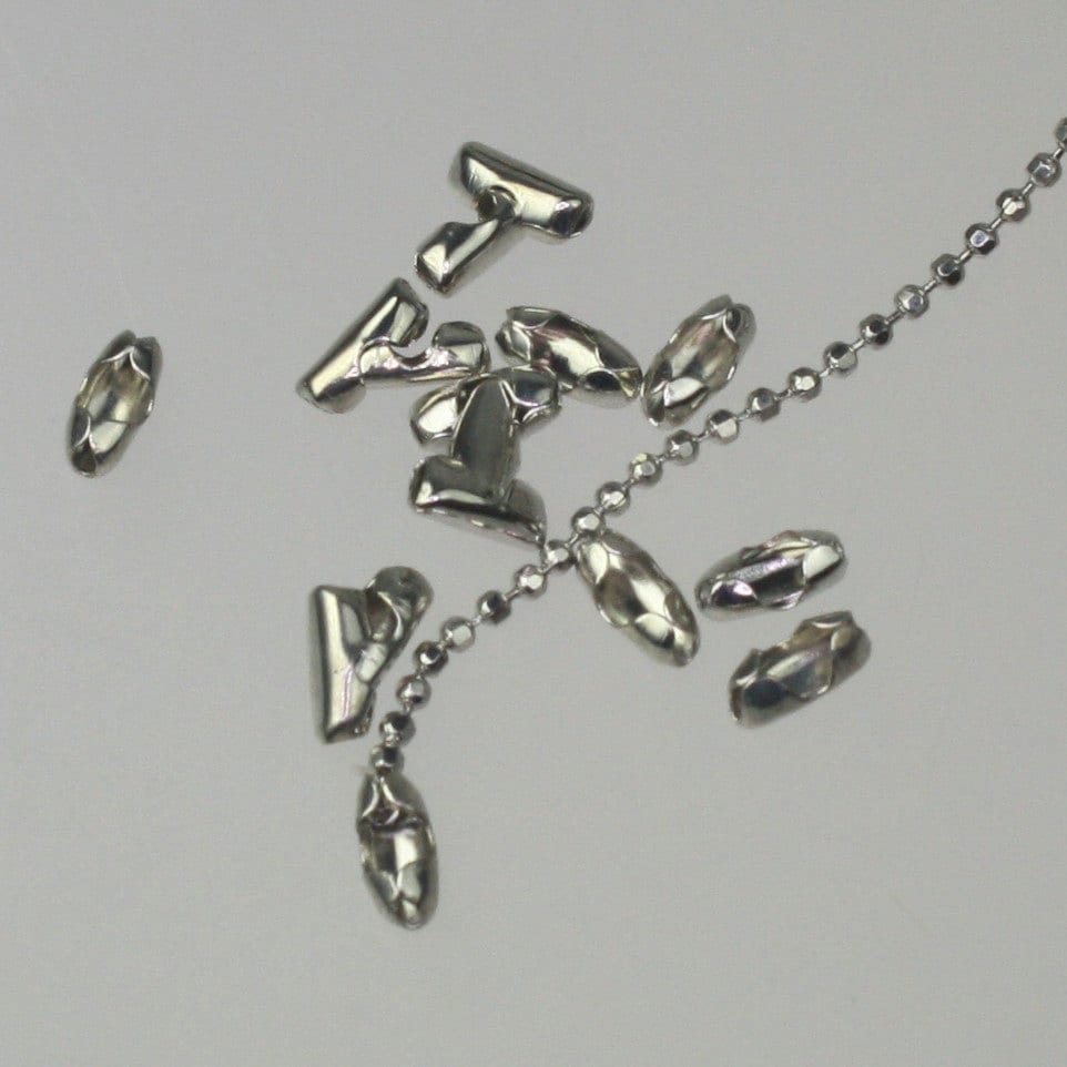 Rhodium Plated Ball Chain Bulk, 100 ft. spool of FACET micro ball chain - 1.2mm ball w/ FREE 100 connectors (Insert) - 12DC