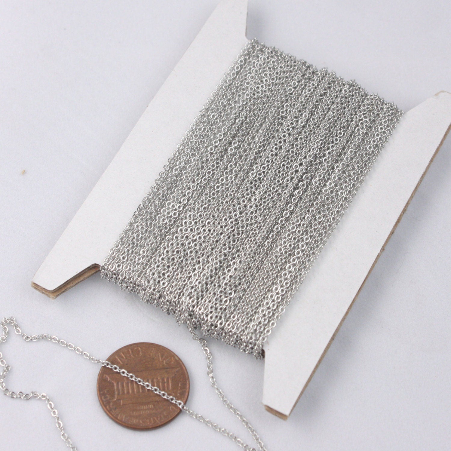 NEW New 32 ft spool of Rhodium Plated little Tiny Flat Soldered Cable Chain 2mm - 2x1.4mm
