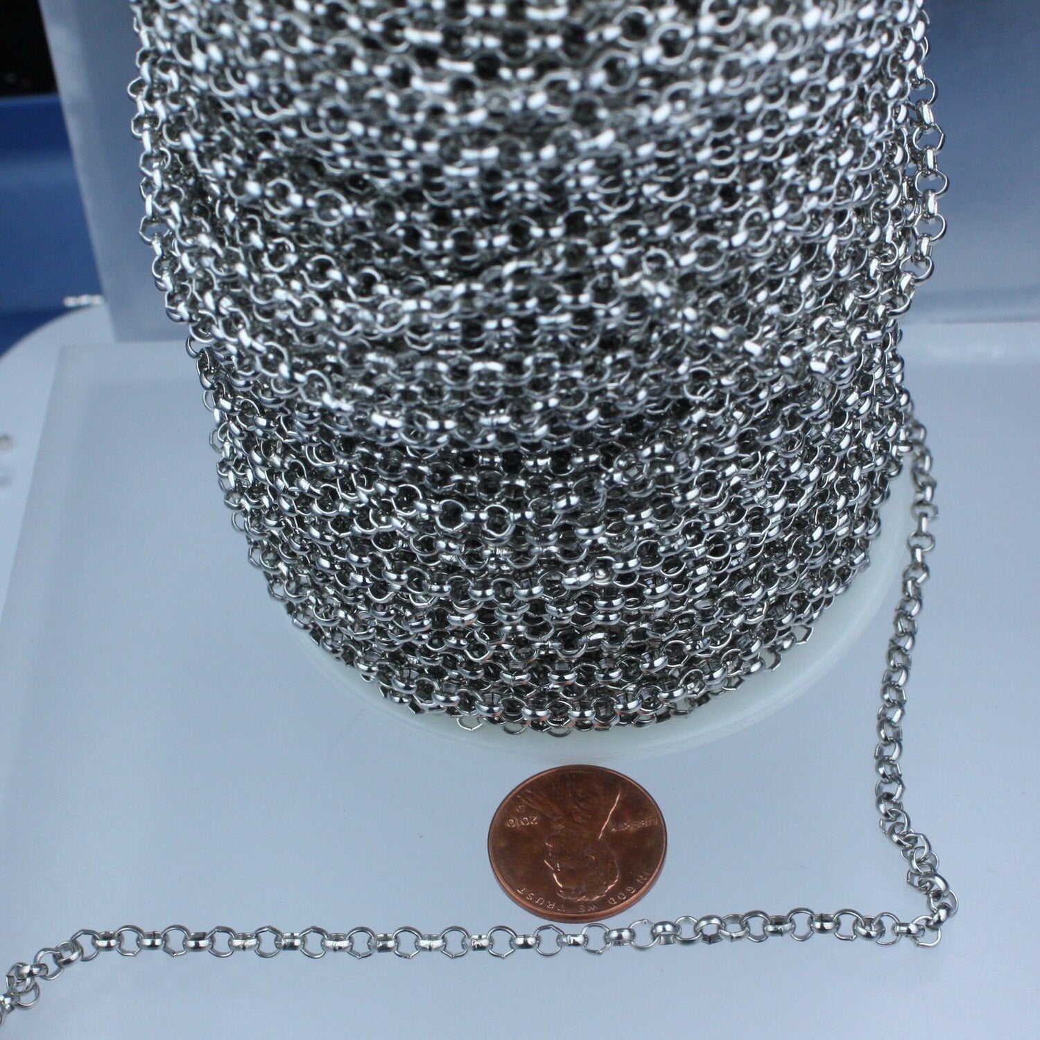12 ft of Rhodium Plated Rolo Cable Chain 3.8mm - Unsoldered Links
