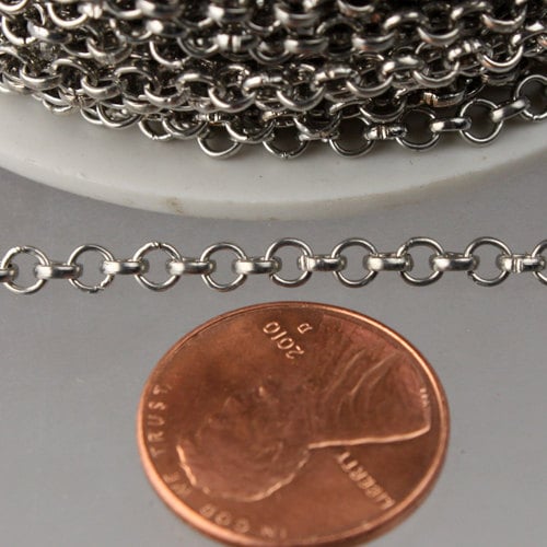 Rhodium Plated Rolo Chain bulk, 32 ft of Antique Silver Rolo Cable Chain 3.2mm - Unsoldered Links - Necklace Bracelet - 3.2ROLO