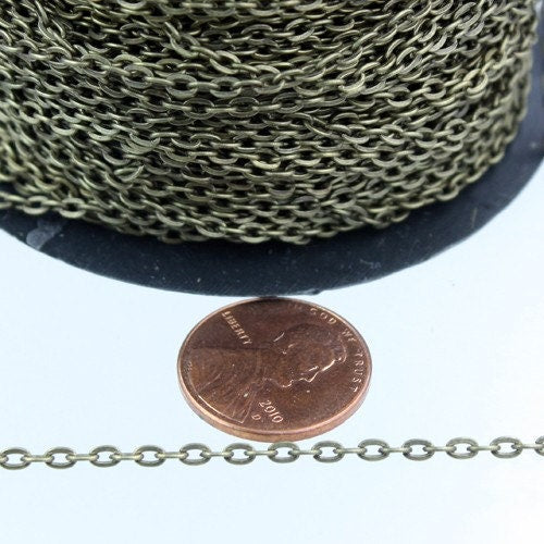 100 ft. of Antique Brass Finished Flat Cable Chains - 3x2mm unsoldered