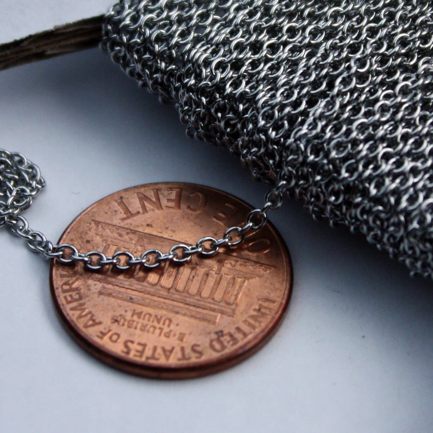 Stainless Steel chain bulk, 10 ft of Surgical Stainless Steel Small Soldered Sturdy cable chain - 1.55mm SOLDERED Link
