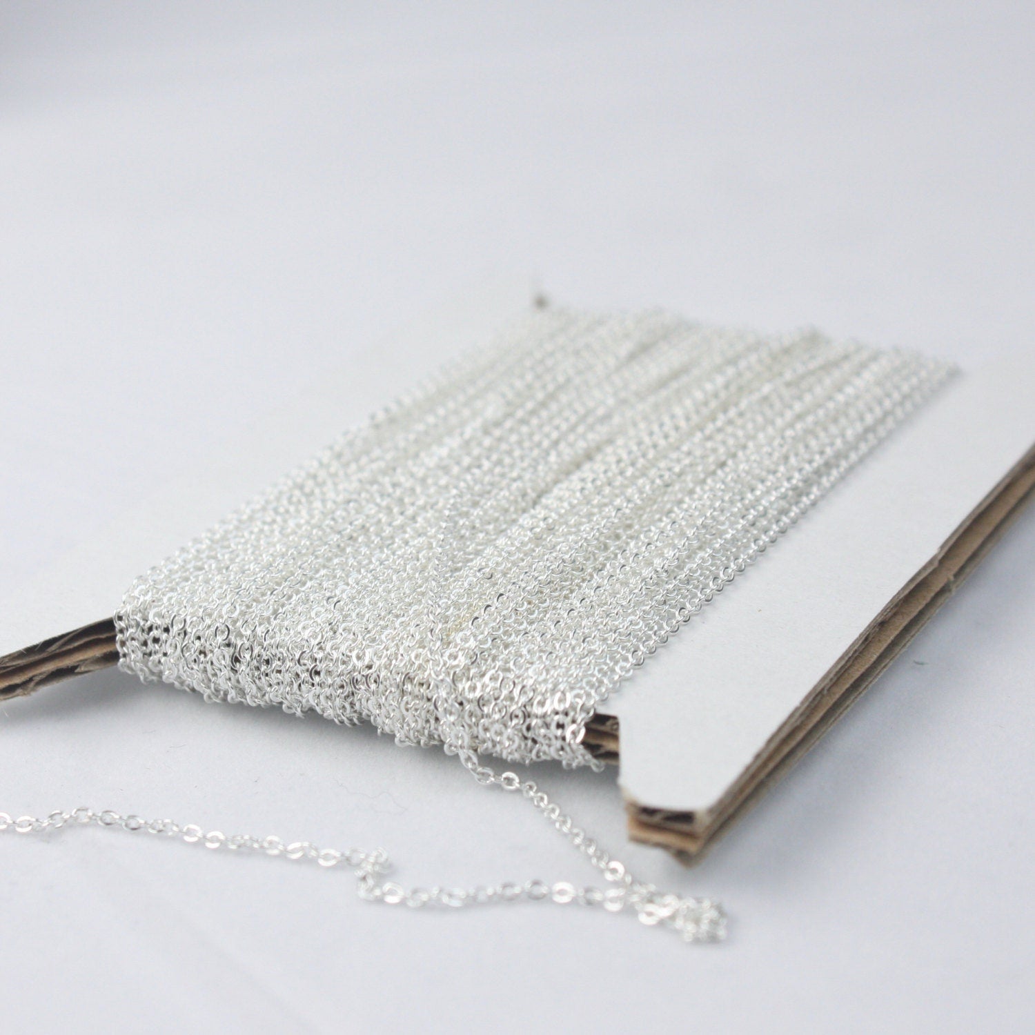 Sterling Silver Plated Bulk Chain, 10 ft of Tiny Flat Soldered Wholesale Cable Chain - 2mm 2x1.4mm - Free Adequate Jumpring 50pcs - C214F