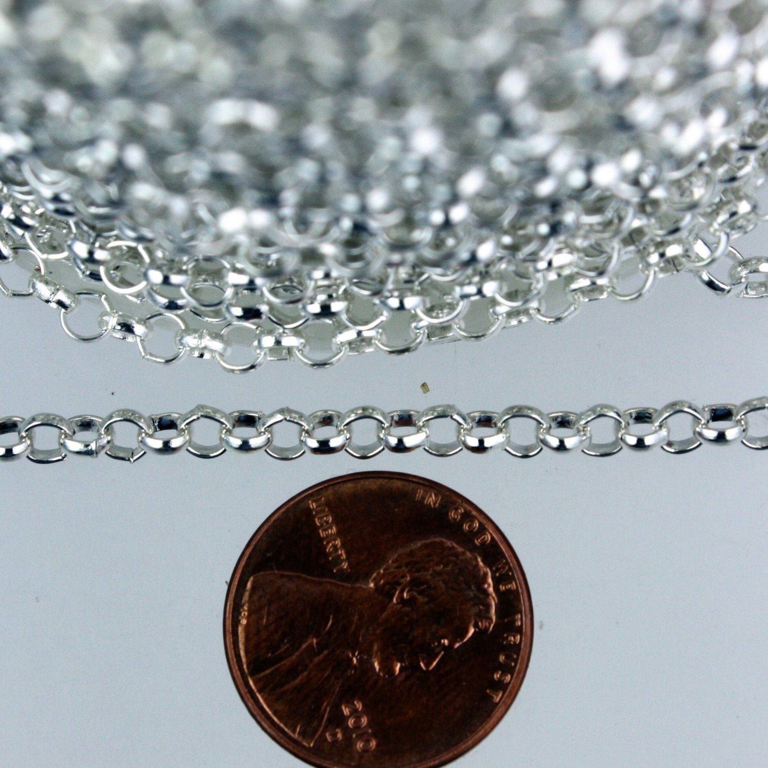 Sterling Silver Plated Rolo Chain bulk, 32 ft of Rolo Cable Chain 3.2mm - Unsoldered Links - Necklace Bracelet - 3.2ROLO