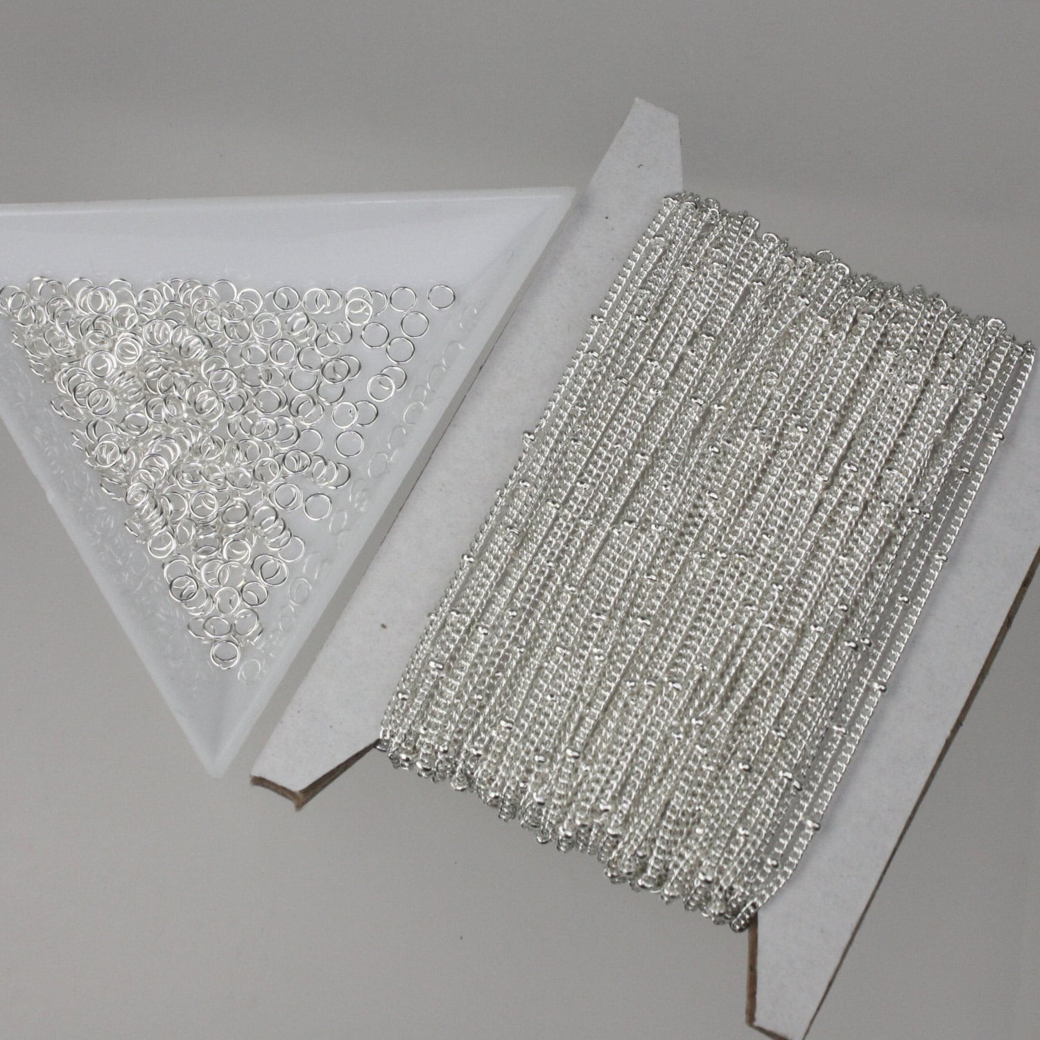 Wholesale Lot 300 ft Sterling Silver Plated BALL Soldered Chain - 1.6mm - tiny Satellite Solder Curb Chain - Free Matching Jumpring (100pcs)